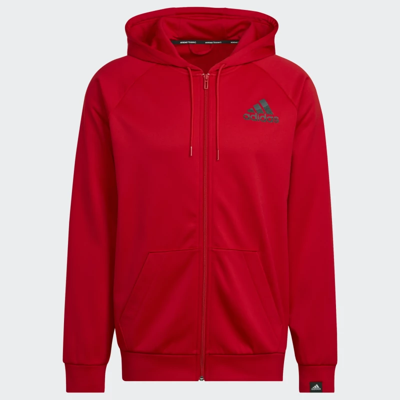 Adidas férfi piros színű cipzáros és kapucnis tréning pulóver
