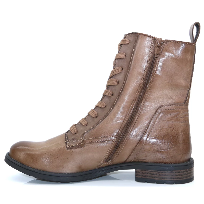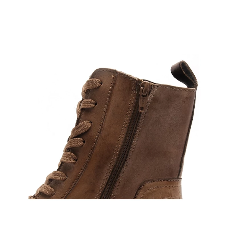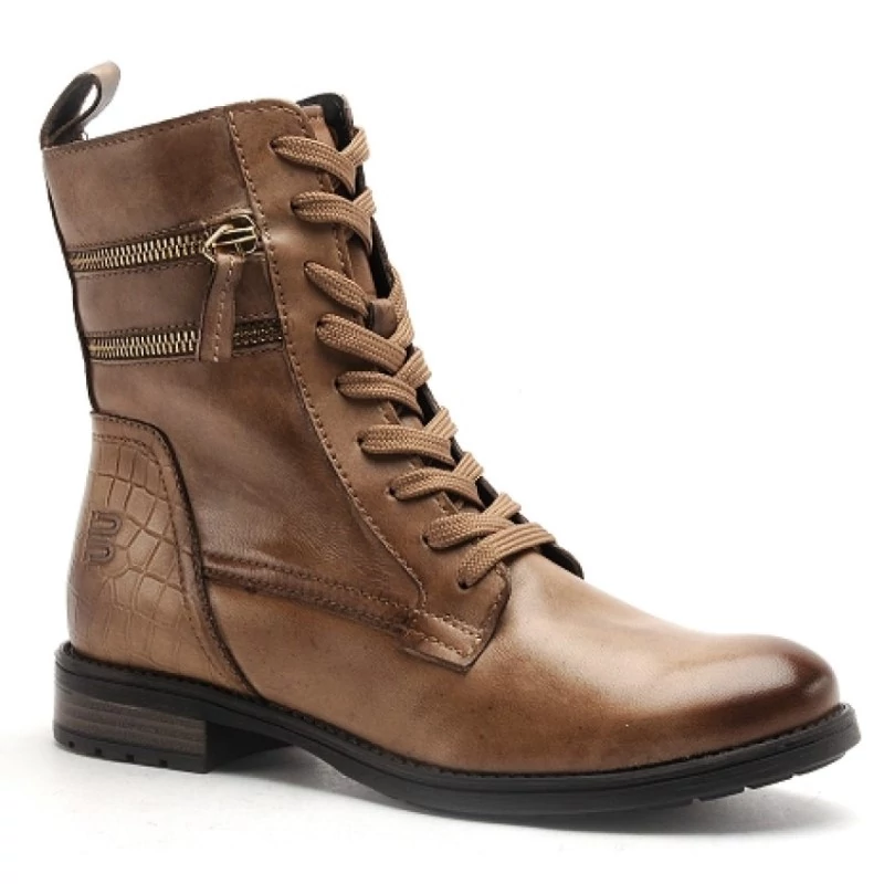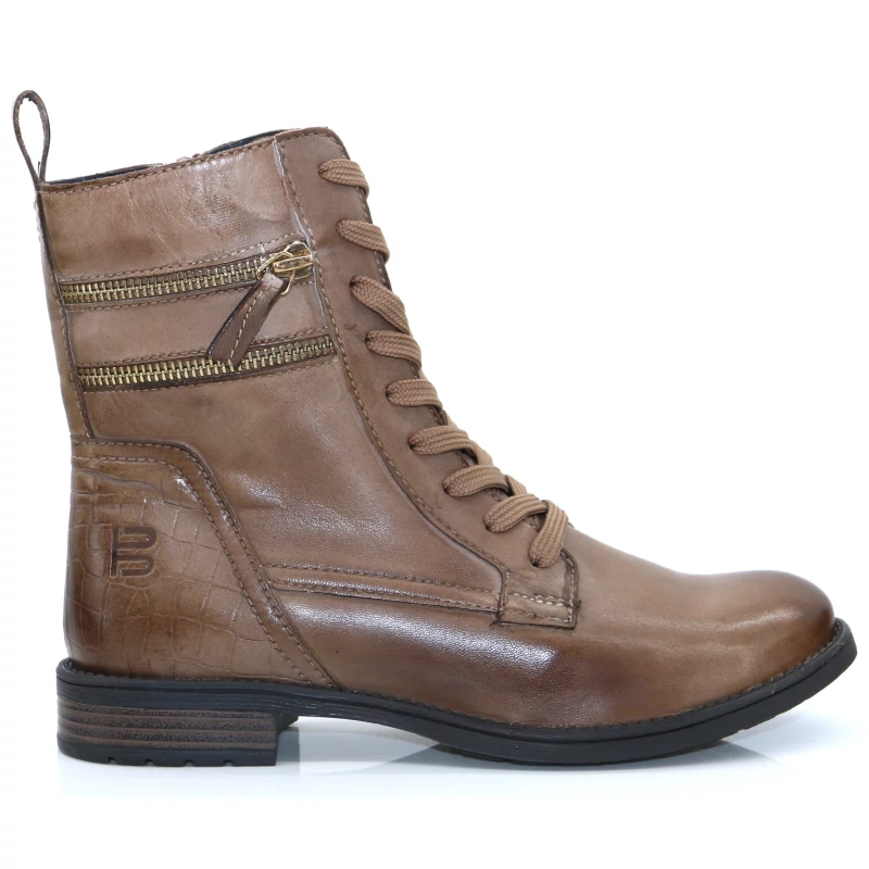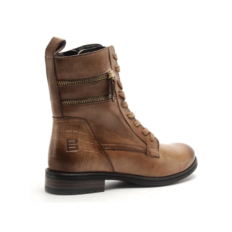 Bugatti női barnás bézs színű fűzős és cipzáros bőr bokacsizma