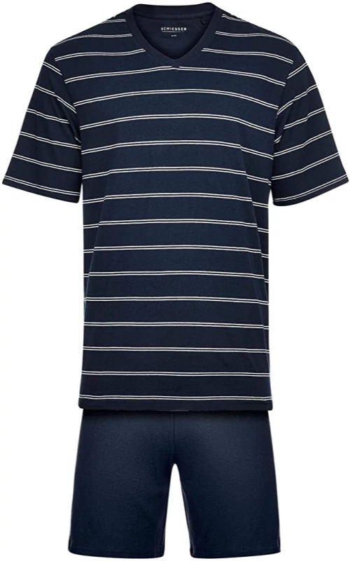 Schiesser férfi kék színű,rövid szárú,pamut pizsama